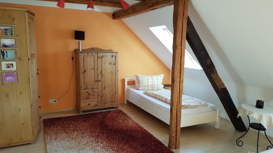 Große, gemütlich liebevoll eingerichtete Wohnung mit 2 Schlafräumen,3 Schlafzimmer zusätzlich buchbar, Wohnzimmer, Küche, Bad mit Badewanne und Dusche, sie befindet sich im 1. Stock und verläuft über 2 Etagen.