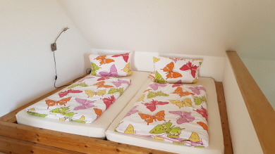 Große, gemütlich liebevoll eingerichtete Wohnung mit 2 Schlafräumen, Wohnzimmer, Küche, Bad mit Badewanne und Duschgelegenheit, sie befindet sich im 1. Stock und verläuft über 2 Etagen.